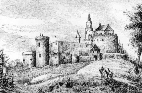 rekonstrukcja zamku z XVII wieku z tablicy informacyjnej