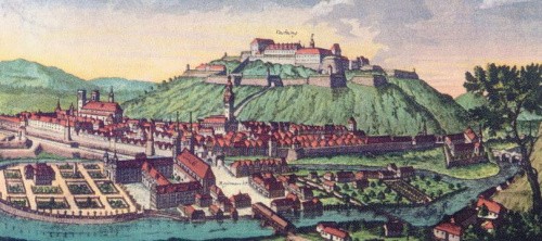 zbliżenie zamku na panoramie miasta z lat 1536/1537