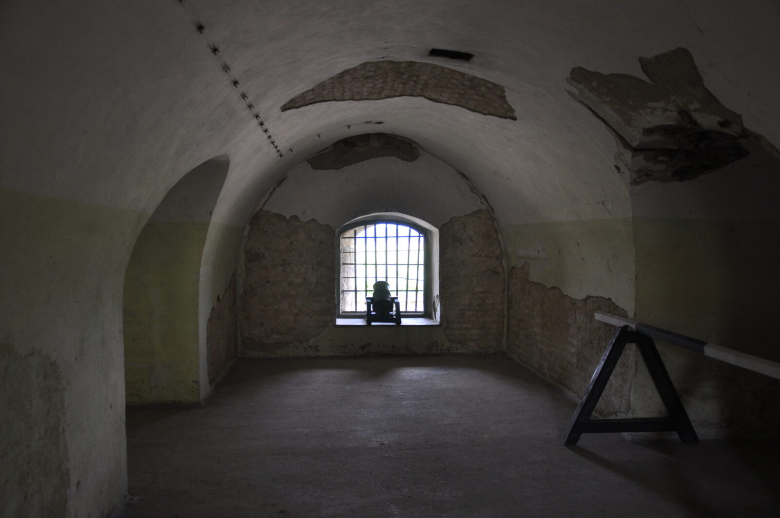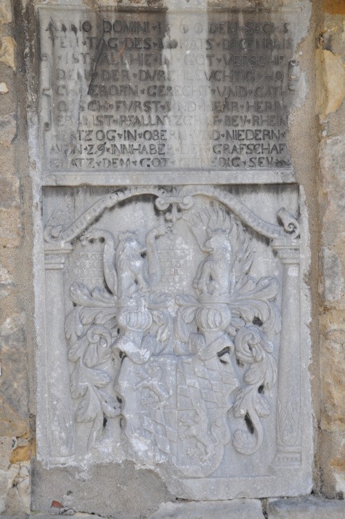 tablica nagrobna Ernesta Witelsbacha z kaplicy zamkowej wmurowana w ścianę twierdzy