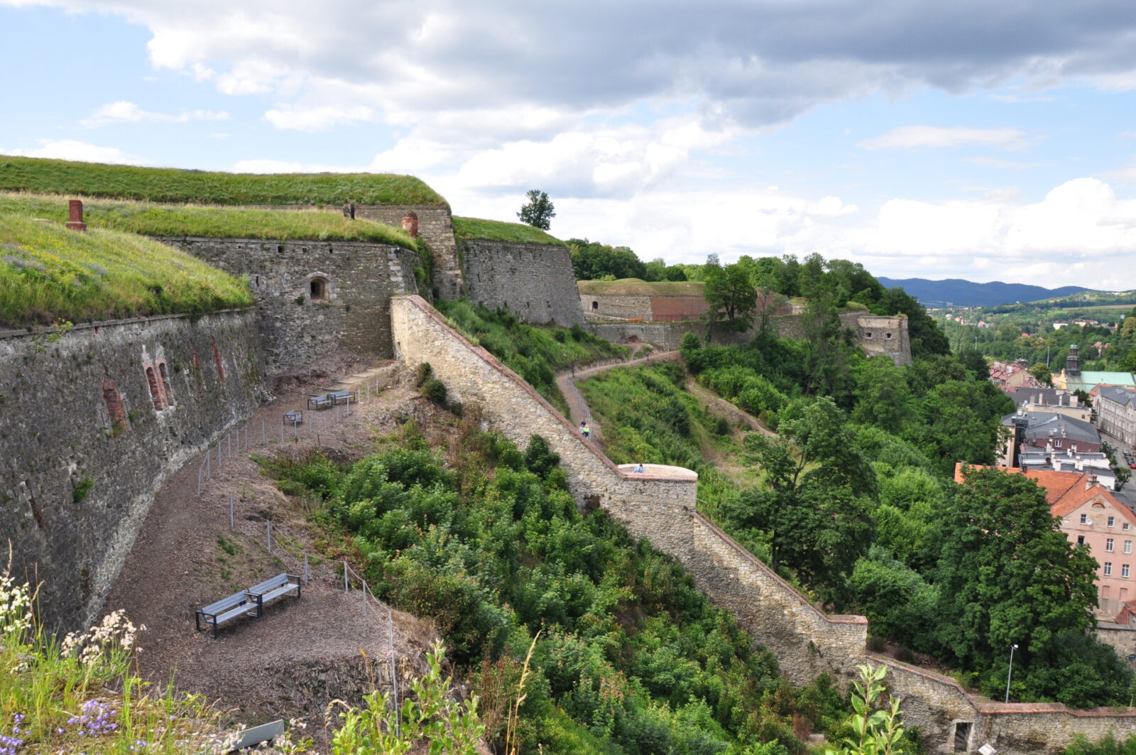 Pierwsza wzmianka o istnieniu grodu obronnego na Górze Fortecznej (Zamkowej) w Kłodzku pochodzi z relacji Kosmasa, czeskiego kronikarza z 981 roku. Należy sądzić, że był to zespół drewnianych budynków otoczonych palisadą – w takiej formie zdobył go i spalił czeski książę Sobiesław w roku 1114. Sobiesław odbudował gród w 1129 roku i osadził w nim kasztelana - Gronzatę. Około 1300 roku gród stał się zamkiem mieszkalnym, a za czasów Jerzego z Podiebradów zamek staje się komfortową rezydencją, stanowiącą okazałą siedzibę władcy hrabstwa kłodzkiego. W jej skład obok pomieszczeń mieszkalnych wchodziła kaplica oraz kościół św. Wacława i św. Marcina. Wodę czerpano z pięciu studzien, najstarsza studnia pochodziła z 1393 roku i zwana była Tumską, a najgłębsza – Piekarska, znajdowała się w 60 metrowym szybie. W latach 1557-1560 architekt Ernest Lorenz Kirschke rozbudował twierdzę o zamek średni i niższy. One to, wraz z zamkiem wyższym i fortyfikacjami miasta, stanowiły zespolony w jedno system obronny. W 1622 roku po bitwie pod Białą Górą wojska cesarskie opanowały miasto. Ich działania spowodowały wiele szkód, między innymi konieczność rozbiórki kolegiaty, grożącej zawaleniem oraz budynków warowni. Po opanowaniu miasta dalsze prace nad rozbudową umocnień prowadził w latach 1690-1702 Jakub Carove. Średniowieczne mury zastąpiono kurtynami i bastionami. Na zlecenie Habsburgów wzniesiono wtedy trzy bastiony: Jabłonki, Ludmiły i Wacława. Były one podstawą umocnień twierdzy, tworzyły tzw. dzieło koronowe, osłaniające Górę Forteczną od północy i wschodu. Natomiast od południa i zachodu wybudowano bastiony Alarmowy i Dzwonnik oraz półbastion Orzeł. Kompleks tych umocnień otaczał położony na szczycie zamek, był on częściowo dostosowany do systemu umocnień. Bastiony zostały osłonięte rawelinami – Polnym i Jabłonką oraz fosą. Tym samym odbudowano i zmodernizowano zamek nadając mu bardziej współczesny kształt.