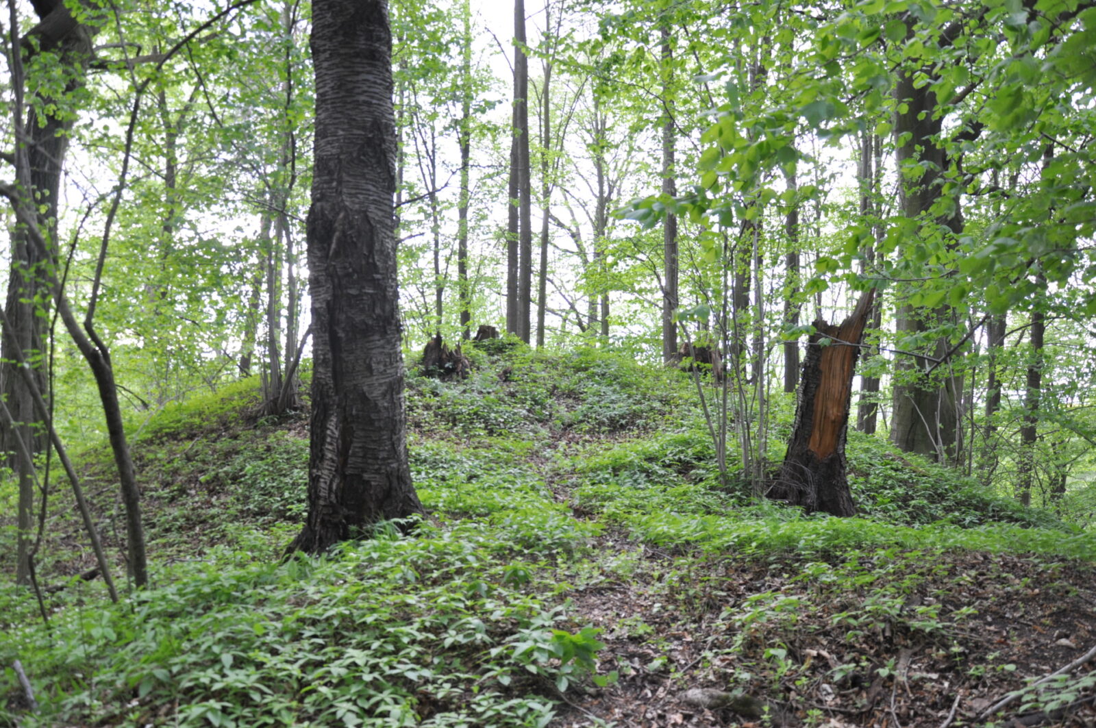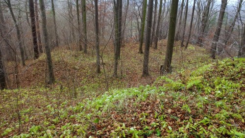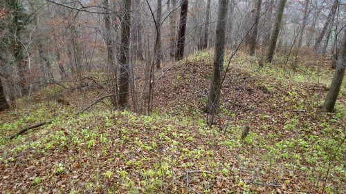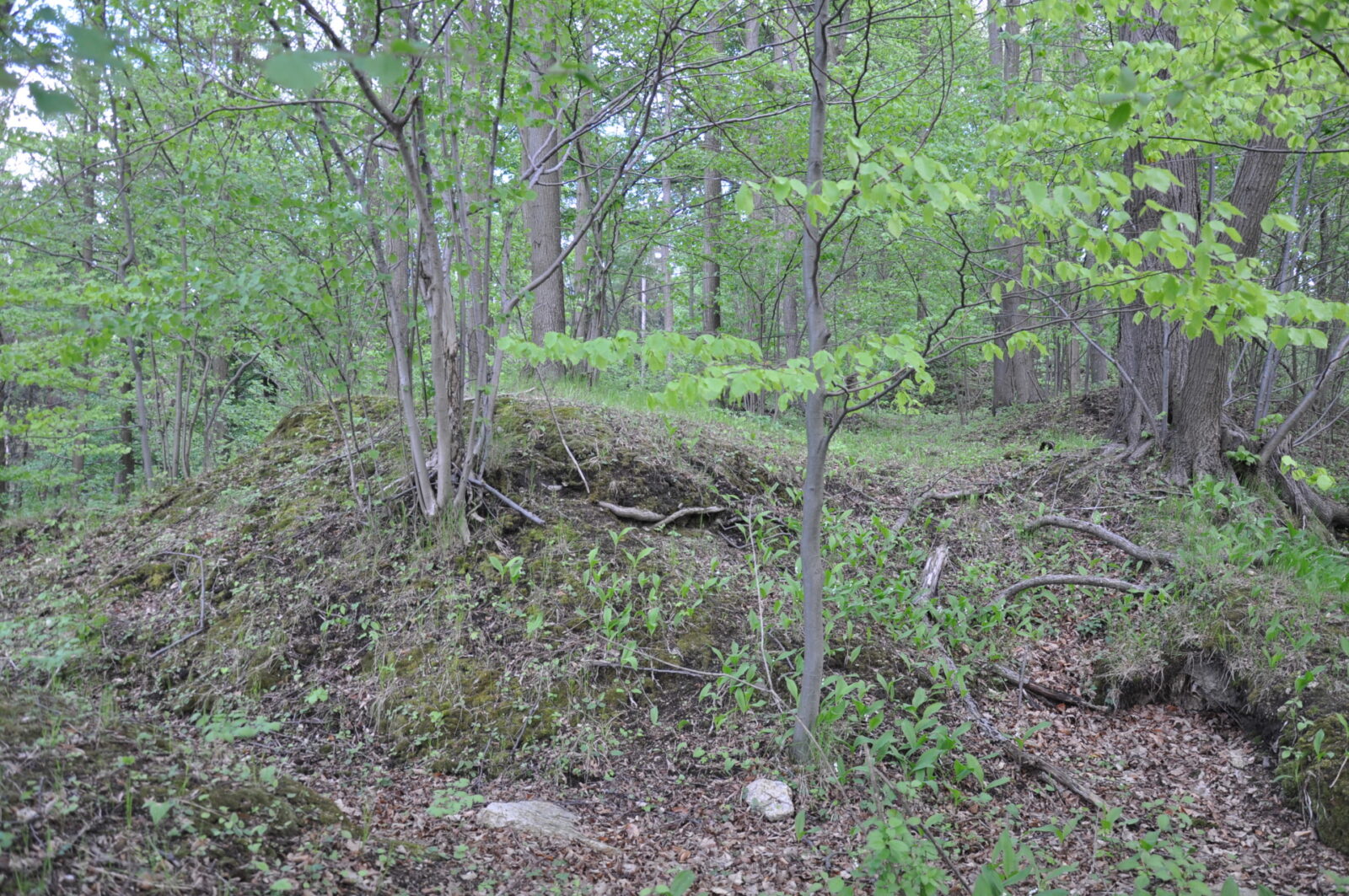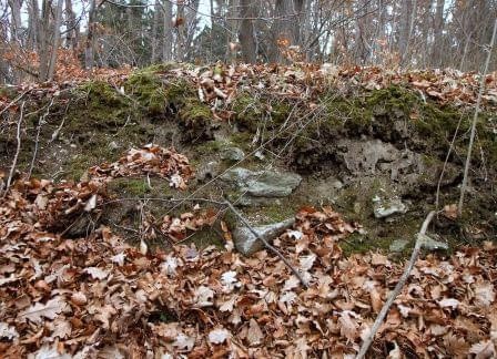 Głównie ziemne pozostałości, w zagłębieniach i dołkach widać troszkę kamiennego rumoszu, pomiędzy tym grudki czegoś co mogłoby uchodzić za zaprawę, ale czy tak jest w rzeczywistości - trudno powiedzieć.