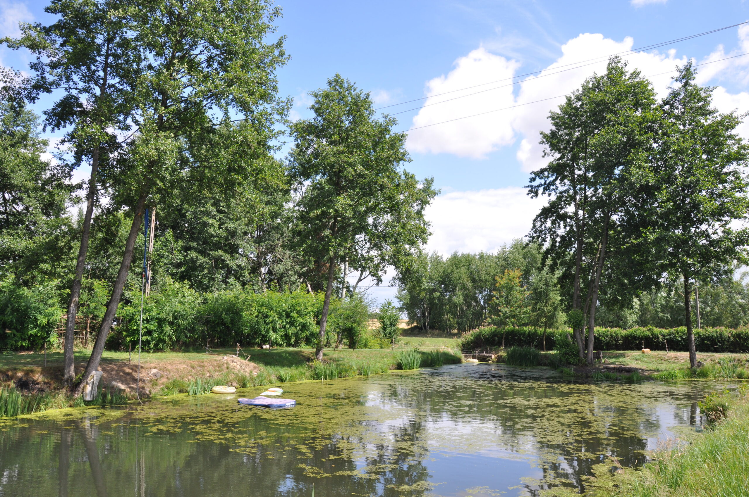 na pierwszym planie dawny staw, za nim stał zamek
