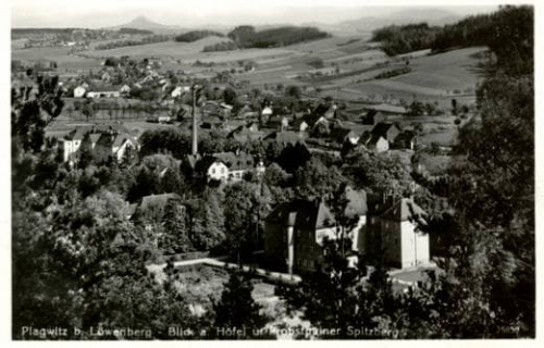 panorama wsi z widocznym zamkiem na pocztówce z początku XX wieku