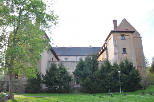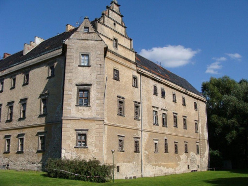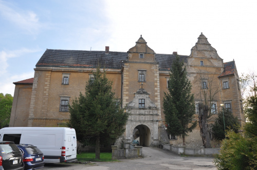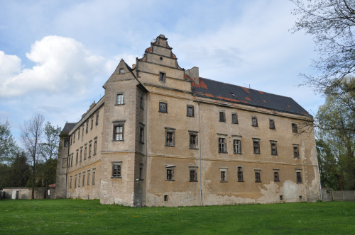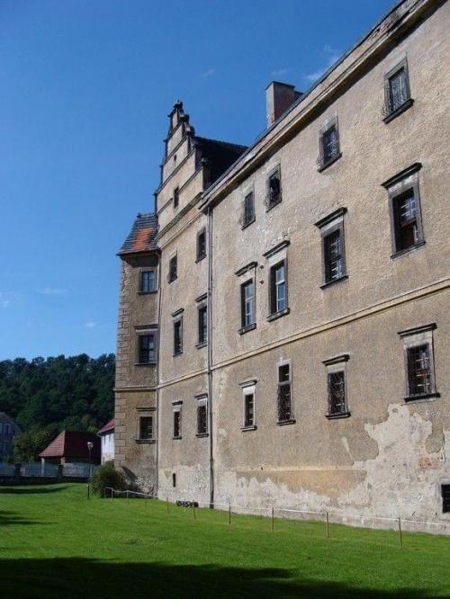 Budowę zamku rozpoczął w 1550 r. ród Talkenbergów z Podskala i trwała ona do 1563 r. Była to największa na Śląsku budowla obronna w XVI w. Przebudowy dokonano dwukrotnie - w XVIII i XIX w. W czasie wojen napoleońskich zamek został znacznie zniszczony. Ostatnim prywatnym właścicielem był August Ludwig von Nostitz-Rieneck, od którego zamek odkupiła w 1824 r. rejencja legnicka z przeznaczeniem na szpital psychiatryczny. Szpital funkcjonował do 1945 roku. W 1967 roku zamek został częściowo odrestaurowany. Od 1992 roku należy do Chrześcijańskiego Ośrodka "Elim" Kościoła Baptystów i poddawany jest intensywnemu remontowi. Budowla składa się z trzech dwukondygnacyjnych skrzydeł okalających wewnętrzny dziedziniec krużgankami, których arkady wsparte są na jońskich kolumnach. W narożach znajdują się schody. Od czwartej strony zamknięty jest murem kurtynowym. Na dziedziniec prowadzi brama wjazdowa z portalem, przed którą znajduje się kamienny most przerzucony przez fosę obronną. W lewym narożniku portalu znajduje się medalion z podobizną Rampolda von Talkenberg. Zachowały się także renesansowe zdobienia fasad.