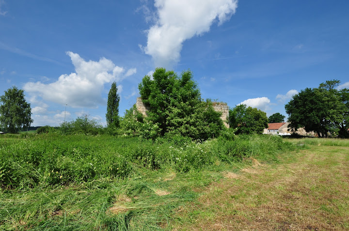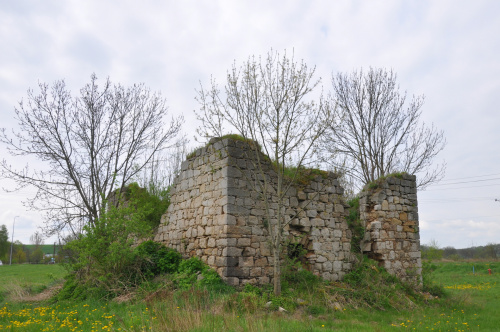 Ruiny wieży znajdują obok głównej drogi, dojście przez pole.