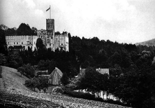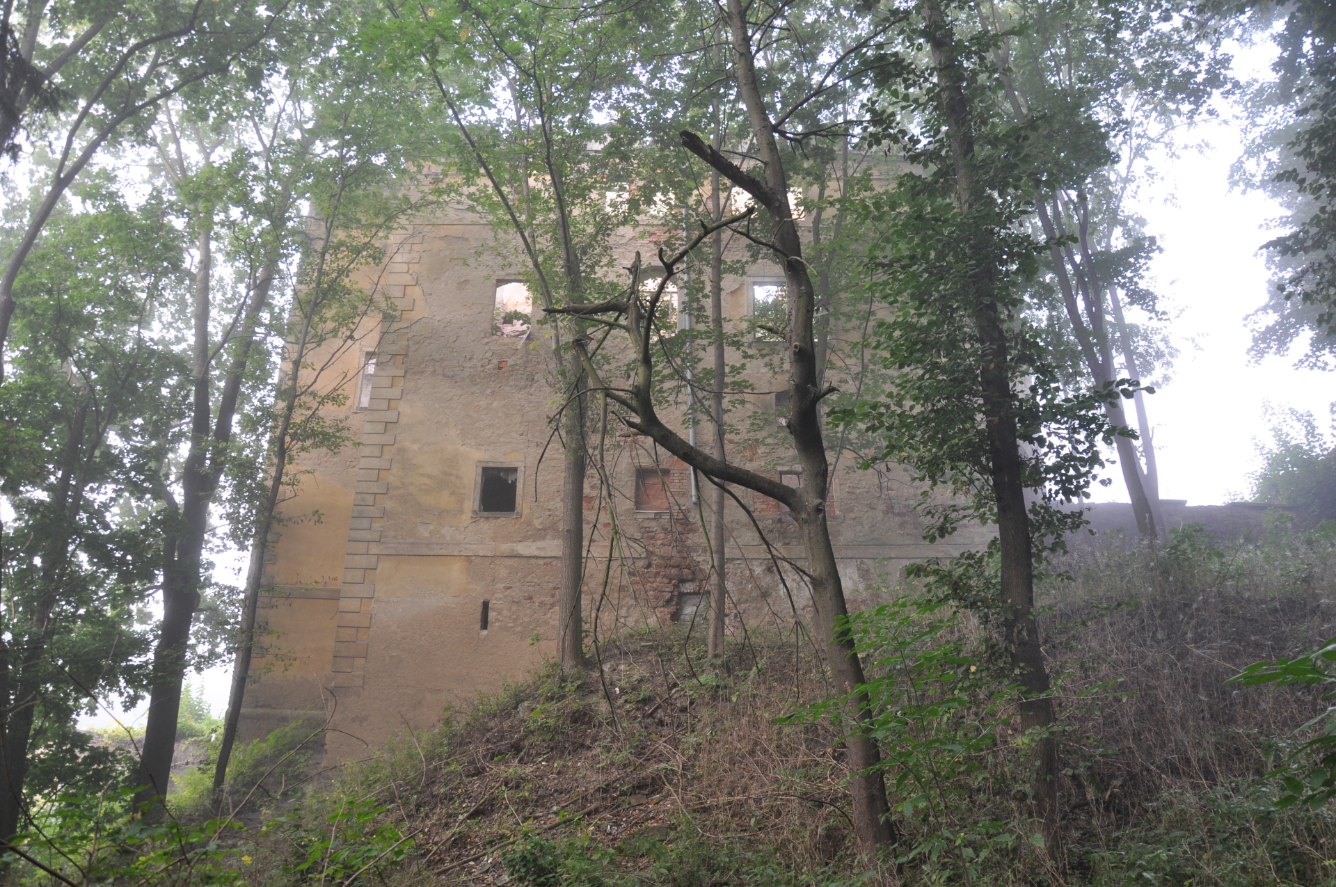 Zamek rycerski leżący na wzgórzu, zbudowano na początku XVI wieku na planie nieregularnym jako siedziba rodowa Panowniców. Pierwsza wzmianka historyczna pochodzi z 1377 roku. W drugiej połowie XVI wieku, kiedy właścicielem zamku był Ulrich von Hardegg, rozbudowany i otoczony wałami.