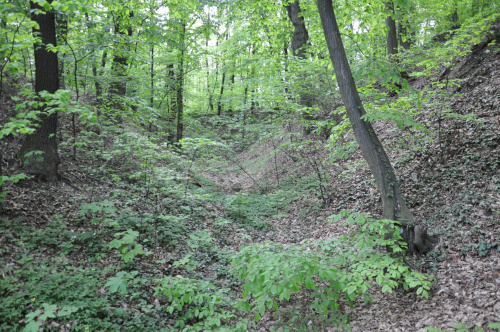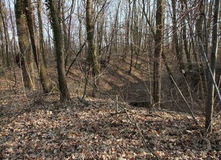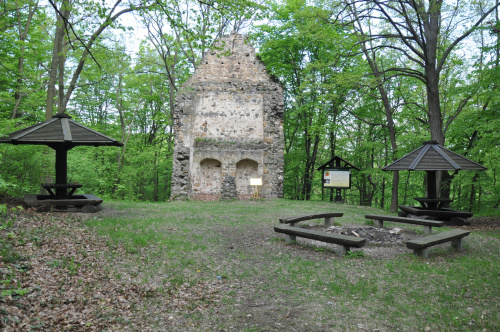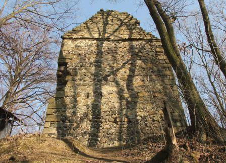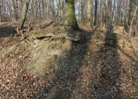 Relikt fundamentu budynku mieszkalnego widoczny jest pod tym drzewem.