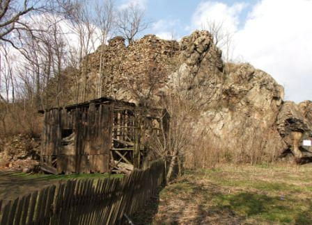 Ruiny nadają się do zwiedzania tylko w porze bezlistnej. Wstęp wolny, warto zaopatrzyć się jedynie w kija na wałęsające się psy. foto marzec 2011