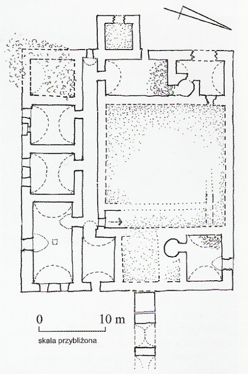 szkicowy rzut piwnic na podstawie notatek terenowych wg A.Kwaśniewskiego