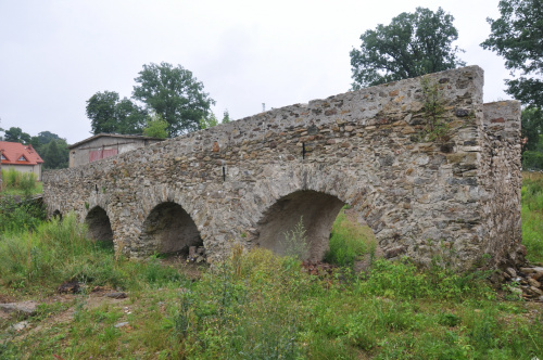 Najstarsza murowana siedziba we wsi, została wzniesiona przed rokiem 1511 przez Ernsta von Schoff. W II połowie XVI wieku, stary zamek został przebudowany na renesansową rezydencję przez kolejnego właściciela Caspara II. Była to wtedy budowla wzniesiona na planie prostokąta 40x30m, czterokondygnacyjna, od zachodu otoczona fosą. Masywny charakter budowli podkreślało jeszcze sgraffitowe boniowanie elewacji. W 1616 roku zamek spłonął, został dość szybko odbudowany przez barona Johanna Ullricha Schafgotsch. Kolejnym właścicielem został w 1680 roku hrabia Zierotin z Moraw. Ostatnim użytkownikiem, od 1756 był kupiec Schmidt z Jeleniej Góry. Rok później w wyniku pożaru we wsi spłonął też zamek, opuszczony popadł w ruinę. Wypalone mury rozebrano na materiał w XIX wieku. Pozostałości XV wiecznej rezydencji tkwią we fragmencie muru po północnej stronie późniejszego dziedzińca zamkowego, są również zachowane w kilku detalach kamieniarskich, m.in w węgarach portalowych wmurowanych w przyziemie XVI wiecznej wieży. Obecnie zachowały się mury czworobocznej wieży, oraz częściowo zasypane piwnice.