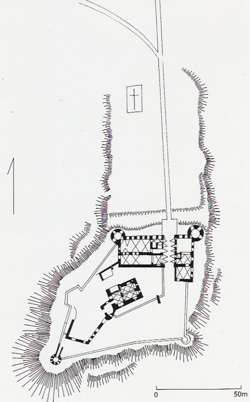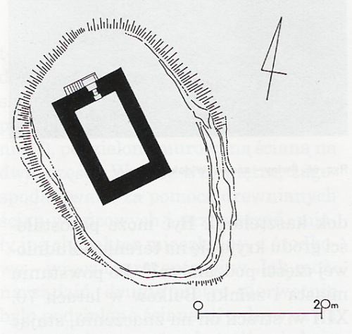 sytuacja hipotetycznej wieży w połowie XIV wieku wg. J.Rozpędowskiego 1961