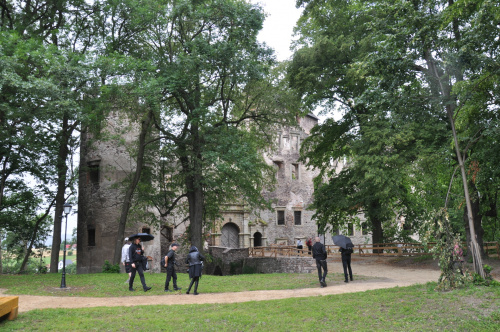 Zamek otwarty albo z powodu sesji ślubnej, która miała miejsce albo z powodu Niedzieli i kilku turystów, którzy podobnie jak my się błąkali. Odźwiernymi była grupa lokalsów w stanie wskazującym na spożycie i drążących dalej temat wraz z rozmowami o krajowej polityce.
