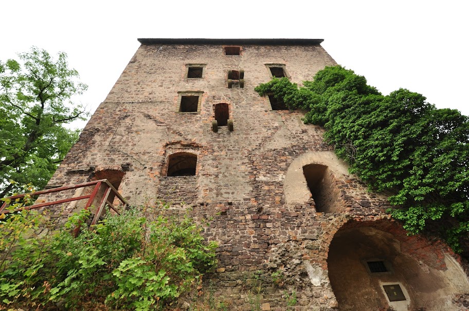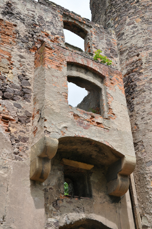 widok na wieżę od strony południowo wschodniej z uwypukleniem kamieniarki średniowiecznej