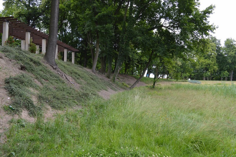 wzgórze pozamkowe, na pierwszym planie dawna fosa