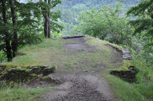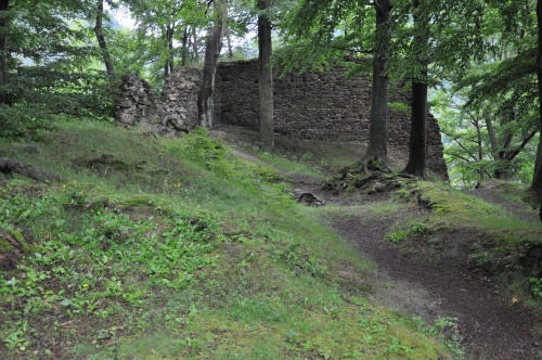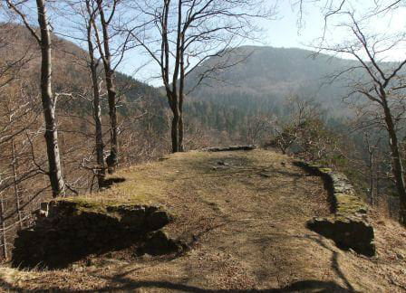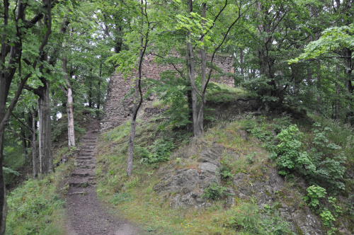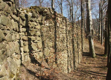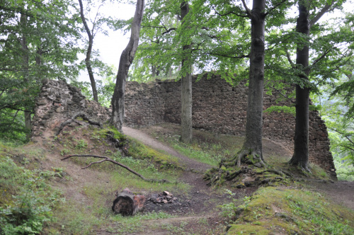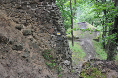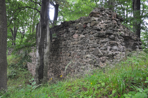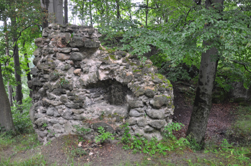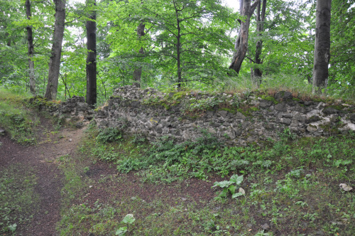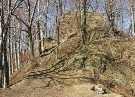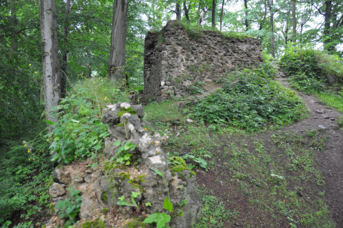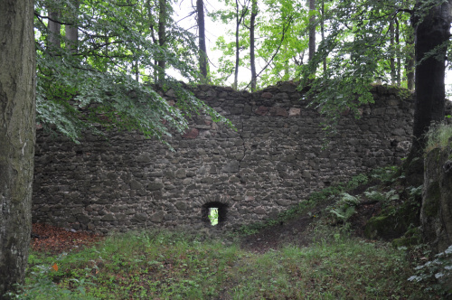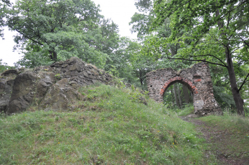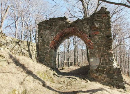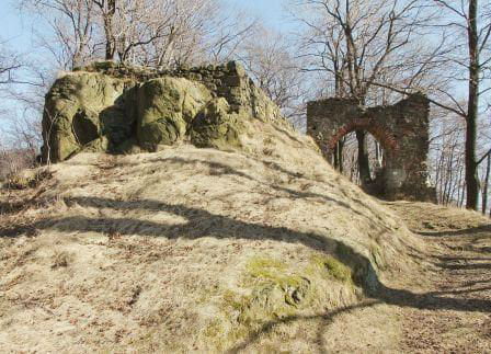 Zamek Nowy Dwór. Relikty kamiennego zamku Nowy Dwór z przełomu XIII-XIV wieku położone są na terenie Parku Krajobrazowego Sudetów Wałbrzyskich w południowo-wschodniej części Gór Wałbrzyskich na południe od Podgórza dzielnicy Wałbrzycha. Zamek został zbudowany na stożkowym i skalistym wzgórzu Zamkowa Góra wznoszącym się 618 m n.p.m. Zamek Nowy Dwór zbudowano na skalnym stromym wzniesieniu wzdłuż szczytu o długości około 140 m, z nieobrobionego kamienia łupanego, na planie wydłużonego, załamanego czworoboku, z dostosowaniem do rzeźby terenu. Zamek składał się z XIV-wiecznego zamku górnego, obwodowych murów obronnych i dwóch domów, w których mieściły się stajnie, zabudowania gospodarcze i pomieszczenia dla załogi. Prostokątnego umieszczonego w północno-zachodnim narożniku o wymiarach około 10 m x 5 m i drugiego o wydłużonym kształcie przy murze północnym, które znajdowały się w obrębie murów, natomiast wieża była usytuowana na zewnątrz murów. Od strony zachodniej, najłatwiej dostępnej, warownię wzmocniono wykutą w skale suchą fosą. Bramę wjazdową ulokowano prawdopodobnie w zachodniej partii zespołu obronnego, w fosie zaś umieszczono zbiornik na wodę. W XVI wieku od zachodu usytuowano zbliżone kształtem do trapezu podzamcze. Dłuższe odcinki jego murów wzmocniono w środkowych partiach, od południa dziobkiem, a półcylindryczną basteją od północy. W XVII wieku podczas wojny trzydziestoletniej twierdza otrzymała fortyfikacje bastionowe. Zamek Nowy Dwór na Zamkowej Górze został wybudowany na miejscu pierwotnego grodu, prawdopodobnie na przełomie XII-XIV wieku, za czasów panowania książąt piastowskich z linii świdnicko-jaworskiej Bolka I Surowego lub Bolka II Małego. Pierwszy dokument mówiący o zamku pochodzi z 1364 roku. Nowy Dwór wchodził w skład wewnętrznego pierścienia warowni, chroniących śląsko-czeskie pogranicze a wraz z innymi okolicznymi zamkami był ważnym ogniwem obronnym południowej granicy księstwa, dając zarazem początek dla rozwoju osady Podgórze. Po śmierci Bolka II zamek należał do żony Agnieszki Habsburżanki. Zamek do 1392 roku był własnością książąt świdnicko-jaworskich, następnie na mocy układu sukcesyjnego przeszedł wraz z księstwem do Korony czeskiej. W 1434 roku zamek kupił od synów Jana Liebenthala, Herman Czetryc. W rękach rodu Czetryców pozostał z krótkimi przerwami do XVII wieku, do czasu porzucenia przez nich zamku. W latach 1450-1462 zamek należy do rodziny Zedlitzów, a następnie ponownie do poprzednich właścicieli. W latach 1402-1417 przeprowadzono niewielkie prace budowlane a gruntownej przebudowie w stylu renesansowym dokonano w końcu XVI wieku. Podczas walk króla Władysławem Jagiellończykiem z królem węgierskim Maciejem Korwinemw 1471 roku stanowił on ważny punkt obrony. W okresie tym znajdowła się już na zamku artyleria. Po podpisaniu pokoju w 1490 roku zamek przeszedł we władanie Fabiana Czirnhaus, by po kilku latach wrócić do Czetryców. Zamek nie został zdobyty ani w czasie walk o Śląsk za Bolka II, ani podczas wojen husyckich, ani w okresie walk między królem Węgier Maciejem Korwinem a Władysławem Jagiellończykiem. Dopiero czwarta kolejna wojna trzydziestoletnia w XVII wieku, położyła kres jego świetności. Po pożarze w 1581 roku spowodowanym uderzeniem pioruna nie został on odbudowany, a jego rolę przejął pałac, wzniesiony przez wspomnianych Czetryców u stóp zamkowego wzgórza. Opuszczoną warownię fortyfikowano jeszcze podczas wojny trzydziestoletniej w celu obrony właścicieli pałacu przed korzystającymi z dobrodziejstw wojennej anarchii zbrojnymi bandami. Później zamek nie był już wykorzystywany i z czasem popadł w całkowitą ruinę. Do dzisiejszych czasów zachowane relikty książęcego zamku składają się z charakterystycznego gotyckiego portalu bramy z dwoma bastejami, fundamentów budynków mieszkalnych, fragmentów murów obronnych otaczających dziedziniec i średniowieczny zamek górny, resztek pozostałości po wieży.