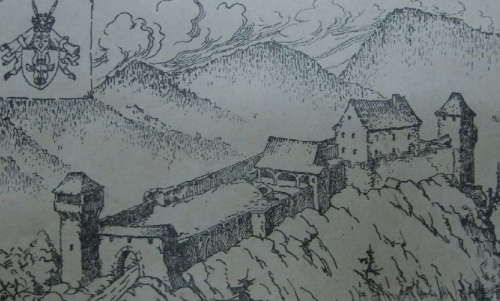 widok na górę zamkową na przedwojennej pocztówce