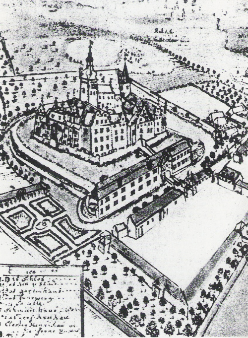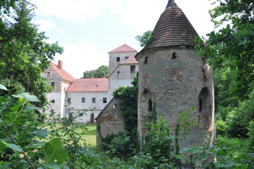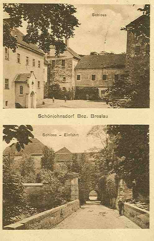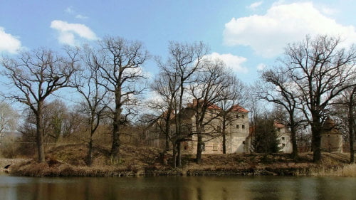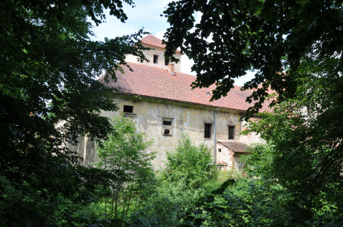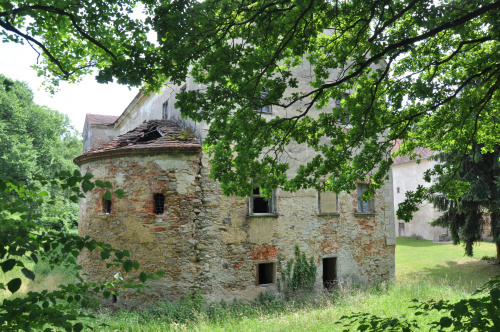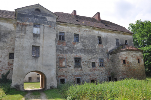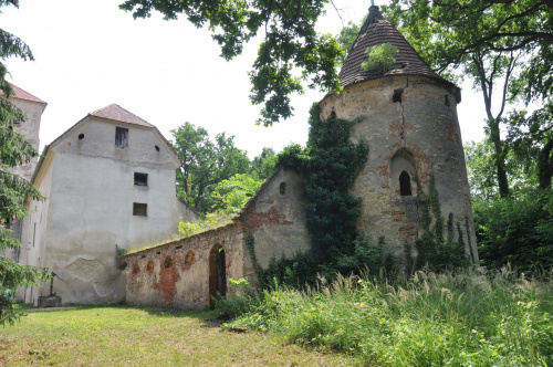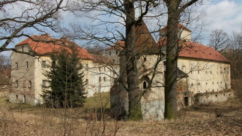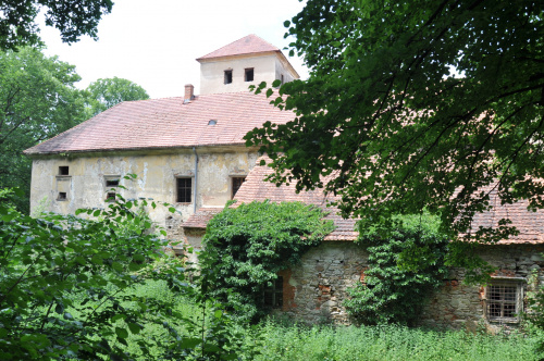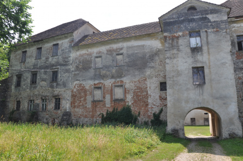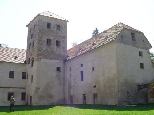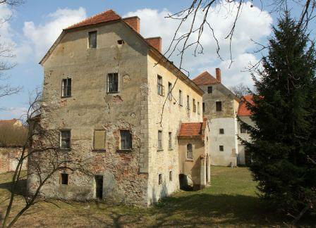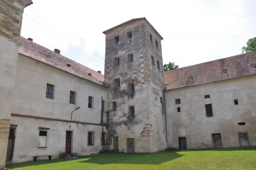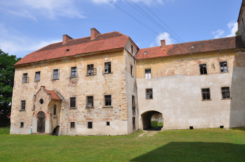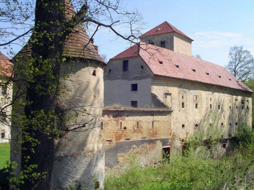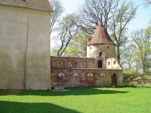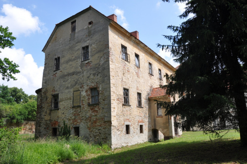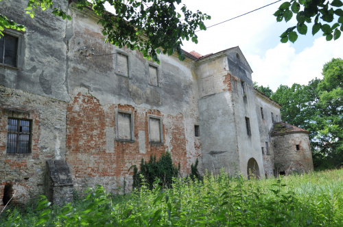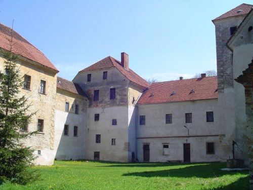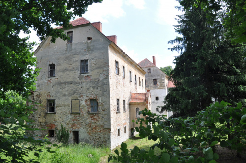 Pierwsze wzmianki na temat tej warowni pochodzą z pierwszej połowy XIV wieku kiedy wieś należała do do Piotra von Domantz. Przebudowywany wielokrotnie przez kolejnych właścicieli. W XVIII wieku został kupiony przez cystersów z Henrykowa. W drugiej połowie XVIII wieku spłonał w wyniku pożaru. Przy odbudowie starcił charakter obronny. Po II wojnie światowej zamek był własnością PGRu, mieściły się w nim mieszkania oraz magazyny. Do zamku wchodzi się przez most przerzucony nad fosą, później budynek bramny. Zamek składa się z trzech skrzydeł, posiada dziedziniec wewnętrzny oraz cylindryczną wieżyczkę. W wyniku renesansowej przebudowy powstały bastionowe fortyfikacje z pięcioma bastejami. Dodatkowo zamek posiadał nasypy od zewnątrz i fosy.