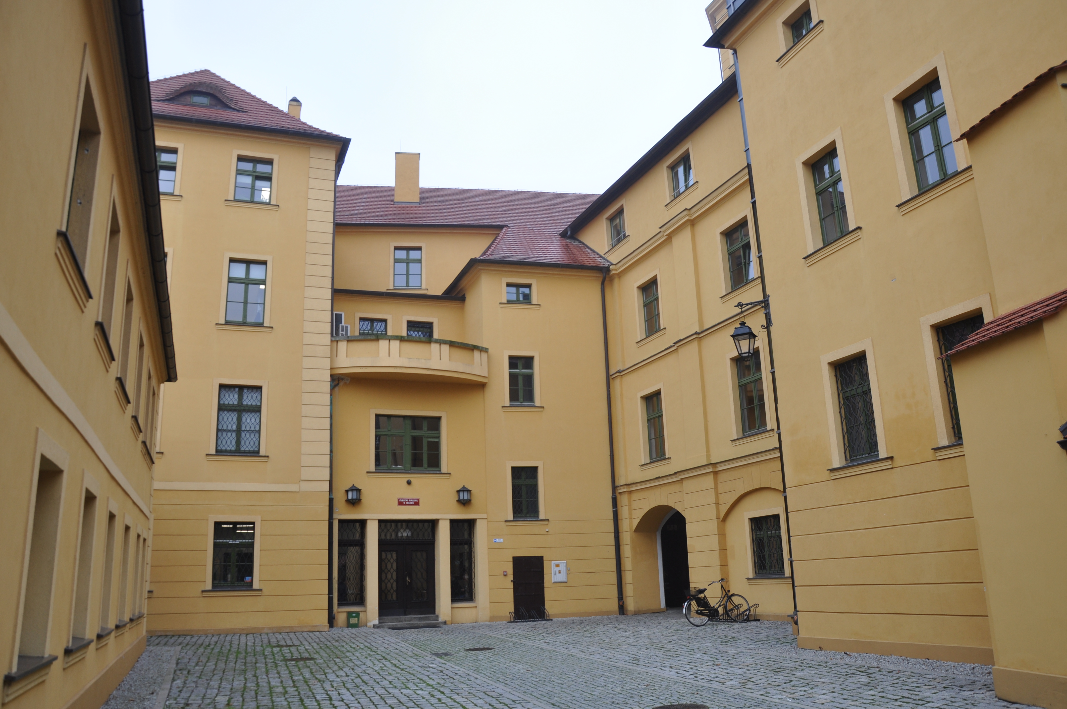 plan Wołowa w 1750 roku na rysunku Wernera, zamek na planie miasta zaznaczony jako 1