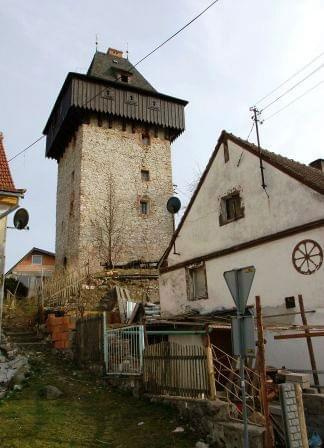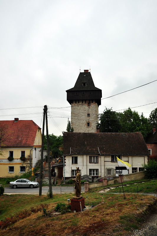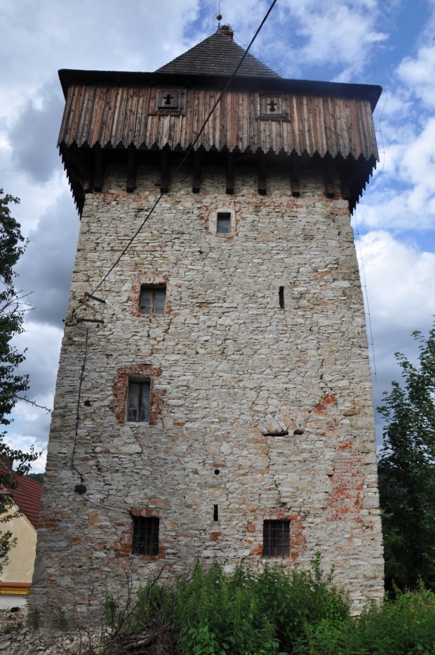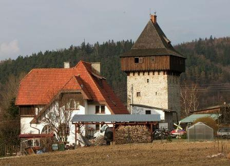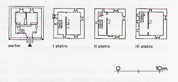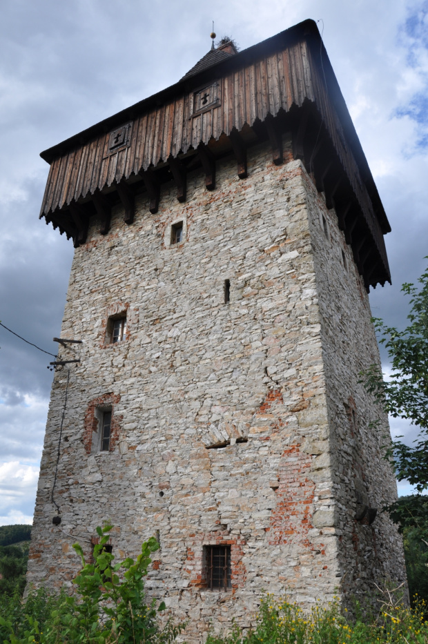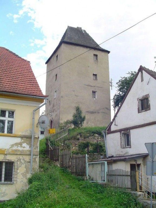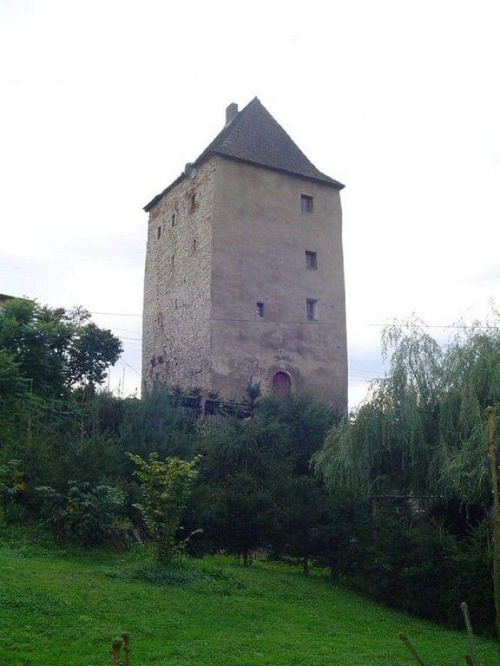 W pobliżu ujścia potoku Piotrówka do rzeki Białej zachowała się czterokondygnacyjna wieżą mieszkalno-obronna. Przyjmuje się, że obiekt mógł powstać u schyłku XV wieku lub w następnym stuleciu. Wieża ma prostokątny plan 6,5x7m i nakryta jest wysokim czterospadowym dachem. Nie znany jest fundator obiektu. Wieża została przebudowana w 1727 roku ba co wskazuje data wykuta na nadprożu portalu. W elewacji zachowały się otwory interpretowane przez B.Jacaszka jako strzelnice i ślad po wykuszu latryny. Nie ma natomiast widocznych śladów okien co może sugerować iz wieża nie pełniła pierwotnie funkcji mieszkalnej.