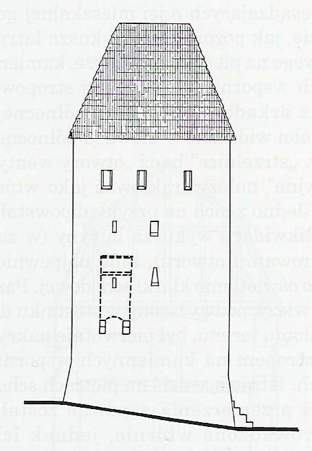 Zdjęcia wieży jeszcze przed dodaniem drewnianej hurdycji.